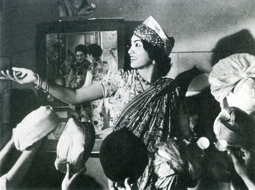 Keen spotting on the part of the blogger of the Shanghai girl in a qipao in India (see the photograph/calendar)! The actress is Shanta Hublikar playing a prostitute in Manoos – hence perhaps the simple sari and mismatched blouse.