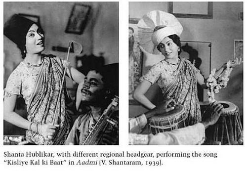 Update: Here is the Shanta Hublikar song. The blouse seems a little fancy with bow ties on the sleeves. In fact a number of blouses that Ms Hublikar wears in this movie are like 1920s/1930s dresses with the bottom part swan off. And the sari positioned to stay on the head , so common at the time.