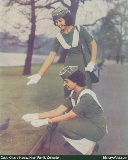 The salwar-kameez as uniform-PIA’s uniform for airhostesses in the 1960s. The changing uniforms with each decade are provided at the link.