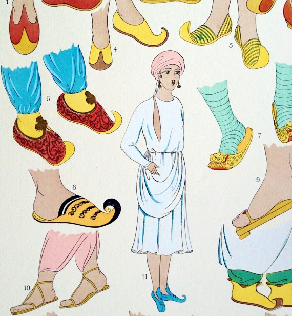 Paul Louis de Giafferri’s pochoir prints which cover a number of historical costumes, including India (~1925). Some are accurate and probably based on photographs of India at the time, some are a bit whimsical and fanciful and European in execution. E.g. No 11 in pic 2 looks nothing like Indian fashions of 1925 or antiquity yet wouldn’t be out of place on an Indian runway today. And of course I love some of the blouses in pic 3.