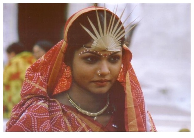 The costume here with a plam leaf woven crown is likely Bundelkhand but I haven’t been able to corroborate this (though the palm leaf crown is cited in marriage customs in Central India).
